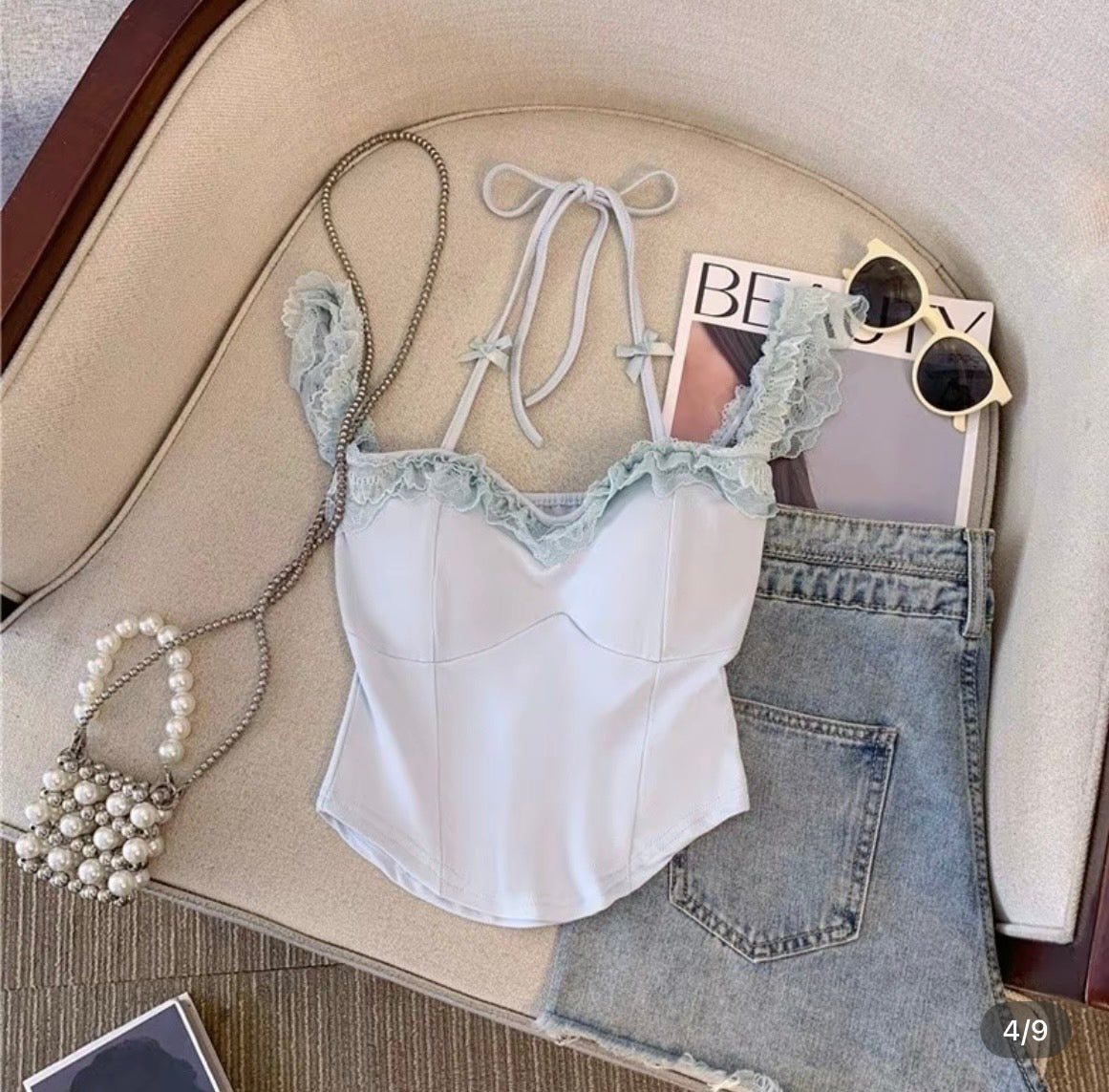 Turn heads with this dreamy lace-trim camisole, crafted for both elegance and everyday wear. Featuring soft pastel fabric with a flattering sweetheart neckline, delicate lace accents, and adjustable halter tie straps. Pair with your denim shorts and sandals for a casual day out or a skirt and heel for evening allure.